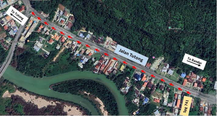 Gambar lokasi penutupan sementara separuh jalan di Jalan Tutong iaitu menghala Sengkurong....